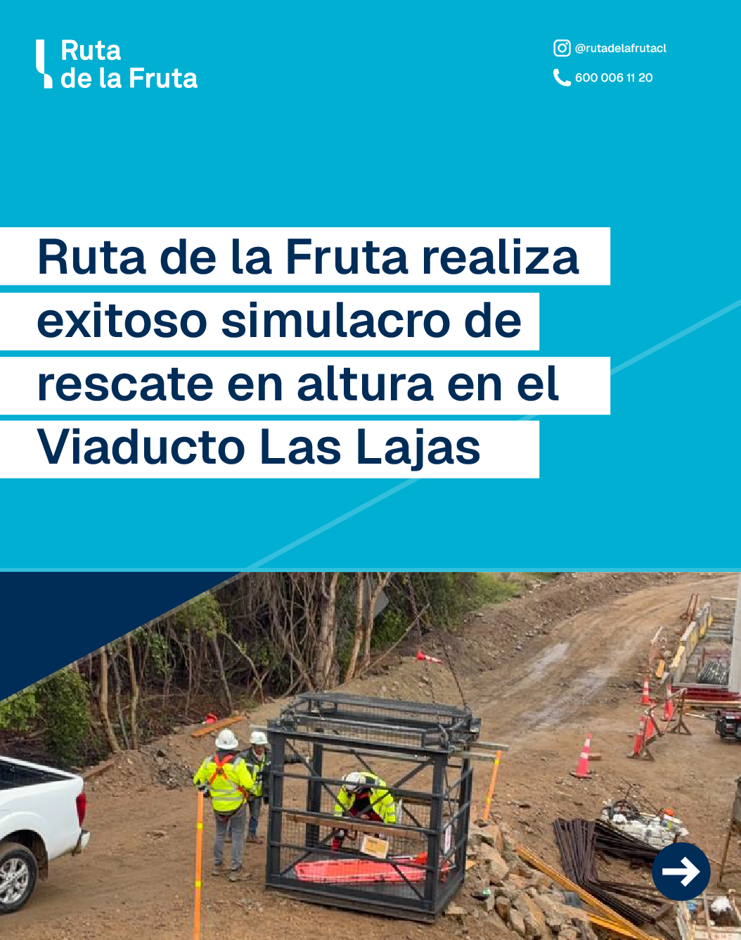 El viernes 20 de marzo, la Sociedad Concesionaria Ruta de la Fruta llevó a cabo un simulacro de rescate en altura en el sector del Viaducto Las Lajas, en el marco del Proyecto R66, reafirmando su compromiso con la seguridad y la prevención de riesgos en sus operaciones.